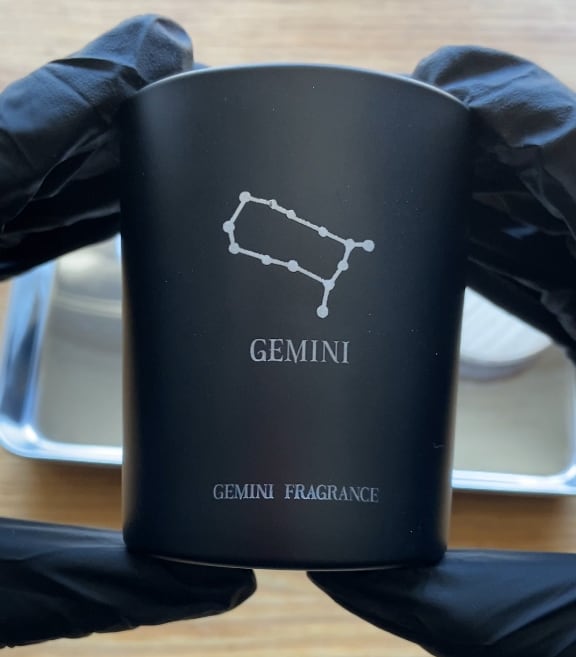 通常キャンドルと違い、レーザー彫刻によるデザインが入ります。
